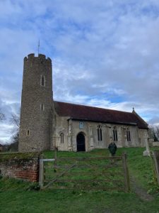 We visited the Grade I listed Frostenden church of All Saints on our return journey from Covehithe. The church with its distinctive tall round tower can be seen for miles. The tower is believed to be one of the oldest in Suffolk potentially dating back to Saxon times. The body of the church dates mainly from the 13th century. Notably the porch has some old graffiti carved into it, one reading ‘1606’. The floor of the church is a rather uneven pavement, but which is charming by its very nature. The interior is very simple with mostly 20th century glass.